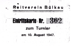 Im Jahr 1952 wurde eine Voltigierabteilung gebildet, deren Leitung Emil Münchmeyer übernahm. Zum ersten Mal wurde einen Reiter zu einem Ausbildungskursus geschickt. Dieses war Heinz Albers. Die Reiter hatten in diesem Jahr auch auswärtige Erfolge zu verzeichnen. Auf dem Dobrock errang die Bülkauer Mannschaft den 2.Preis des Kreisverbansturniers. Johannes Saul erhielt in Neuhaus als bester Fahrer den Ehrenpreis der Kommission für Pferdeleistungs- prüfungen. Auch wurde an einer gemeinsamen Fuchsjagd mit dem Reitverein Dobrock teilgenommen. |