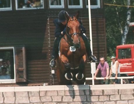 allein dem obigen Reiter den Braunen überhaupt über einen Parcours zu